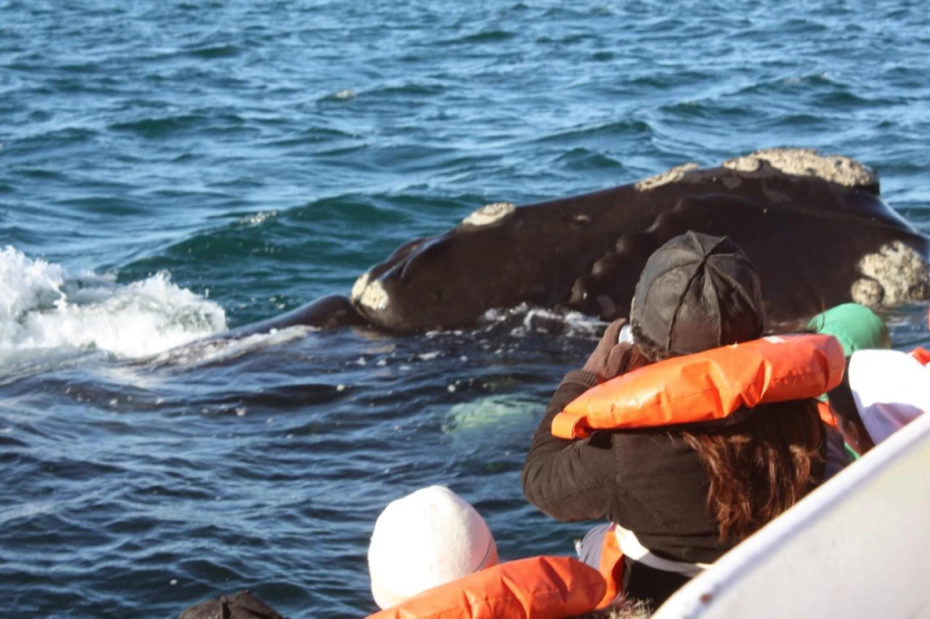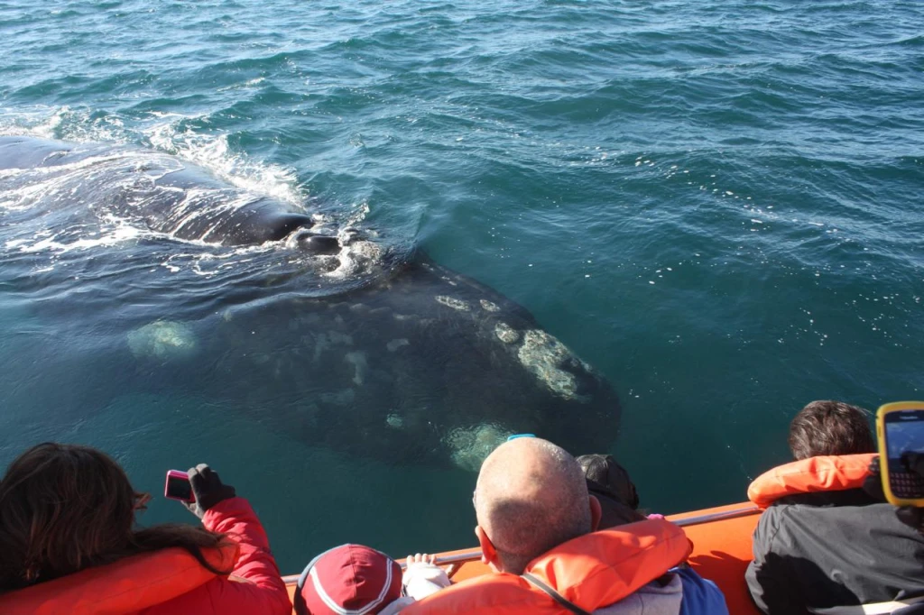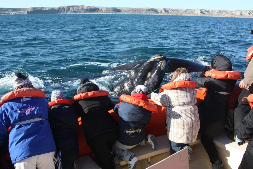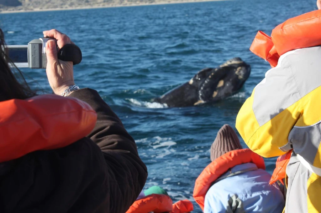 En la localidad de Puerto Pirámides, entre junio y diciembre de cada año, se realizan avistamientos de ballenas francas australes desde embarcaciones.